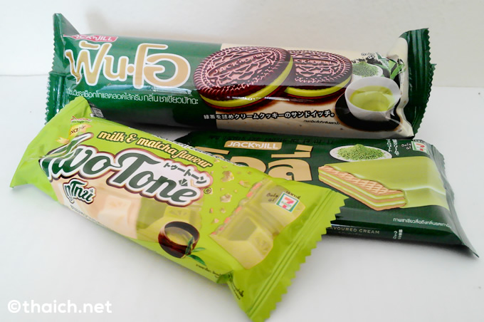 緑茶ブームがタイで始まってどの位たつのでしょう。今でも色々なメーカーの色々な風味の緑茶が続々と発売されていますが、お菓子業界も空前の緑茶ブームです。 ここ1年ほどでグリコのポッキーやロッテのコアラのマーチなど日系メーカーやキットカットが抹茶味のお菓子を発売していましたが、ローカルメーカーも負けていません。続々と抹茶のお菓子を投入中です。「抹茶だらけ」というのは大げさですが(笑)