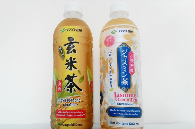 「玄米茶(抹茶入り)」、「天然美香 ジャスミン茶」ともに一本25バーツ(約80円)。喉が渇いた時にも食事にもピッタリのお茶ドリンクですよ。お試しを。