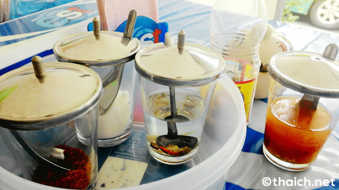タイの食堂や屋台のテーブルには沢山の調味料が並んでいます。タイ料理に欠かせない魚醤ナンプラー、砂糖、唐辛子、お酢、醤油、胡椒、チリソースなどなど。そうです、タイ料理は自分で料理に調味料を入れて、お好みの味に整えるんです。先のタイヌードル屋さんもお客さんがそれぞれの好みの味にして、自分だけの美味しい味を作るお店だったんですね。