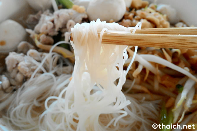 上の写真は極細麺センミー。屋台や食堂では女性がよく注文しているイメージもあるのですが、実際はオジサン達もセンミーを選択しています。というのも、見た目は素麺のようでツルツルいけそうな感じなのですが、実はザクっとした歯ごたえがあって、案外食べごたえが有ります。(茹で具合にもよります)また、麺と麺の間にスープ絡むので、より美味しく食べられるということだそうですよ。