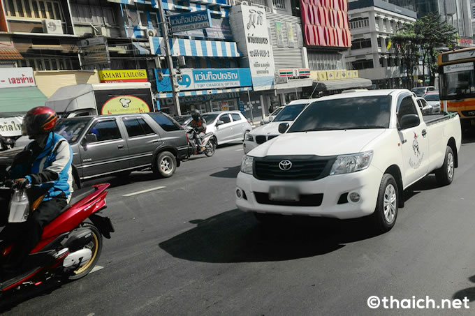 大渋滞の大通りを、停まっている自動車の間を通って横断するというのはタイでよくあることですが、なんと横断中に目の前で女性がオートバイにはねられる瞬間を目撃してしまいました。