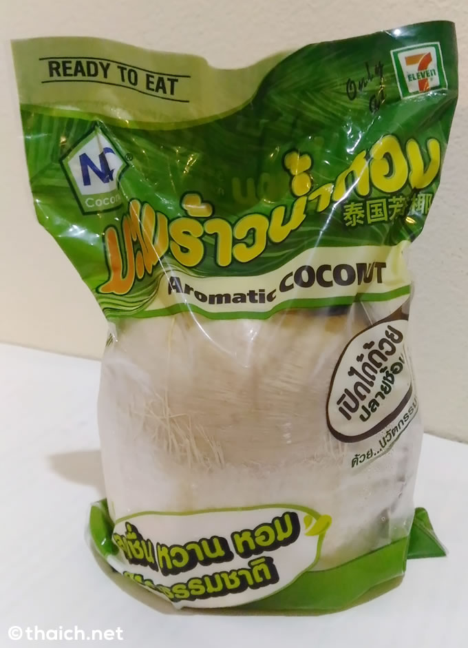 セブンイレブン限定で丸ごとココナッツ「มะพร้าวน้ำหอม(マプラーオナムホーン)」が売られていたので買ってみました。マプラーオがココナッツ、ナムホーンが香水という意味なので、「良い香りのするココナツジュース」といったところでしょうか。最近ペットボトル入りのココナッツジュースはよく見かけるようになったのですが、やっぱりココナッツ丸ごとというのは雰囲気がありますね。
