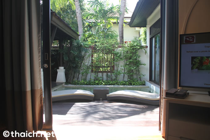 庭を進むと見えてきたのがこの「プールヴィラ」の入り口です。