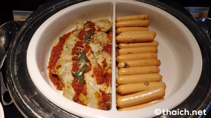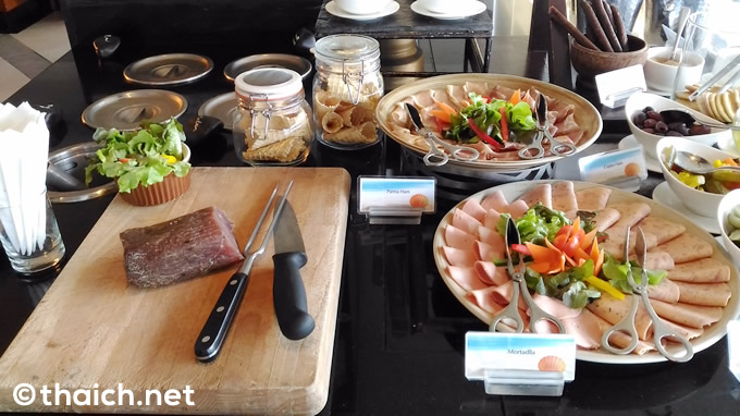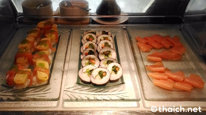 少ないですが和食のコーナーもありました。ただし、サーモンは刺し身でなくスモークサーモンです。またスープのコーナーにはみそ汁も。
