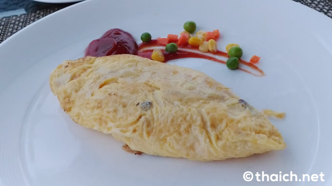 オムレツ。チーズとマッシュルーム入りにしてもらいました。