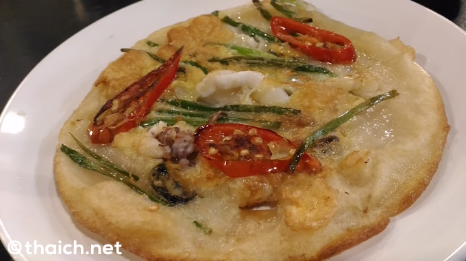 なんとチヂミまでも。サクサクでモチモチの海鮮チヂミ。これも二人で1つです。
