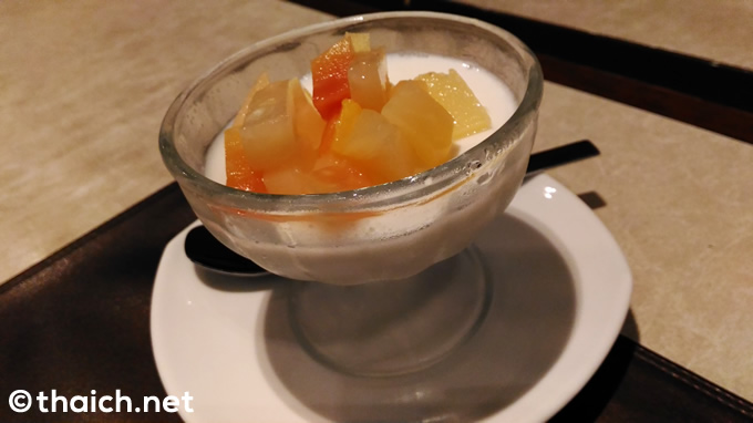 最後のデザートは「フルーツサラダの杏仁豆腐」(70バーツ)です。