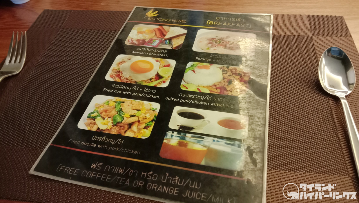「バイトンホテル」にチェックイン。パスポートはフロントに預けて、チェックアウト時に返却してもらいます。なおここはタイ語も通じて、タイバーツの使用も可能です。今回は朝食付きで1泊1,238バーツでした。
