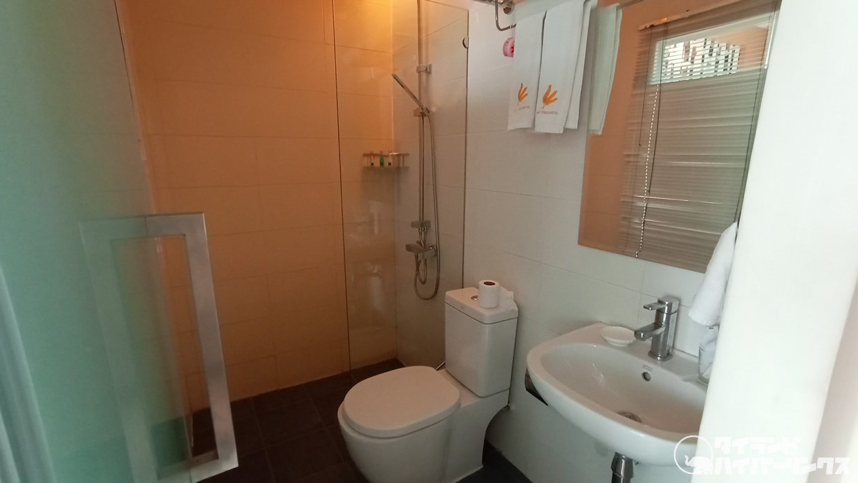 バスルームもバスタブはありませんが清潔。歯ブラシはありました。