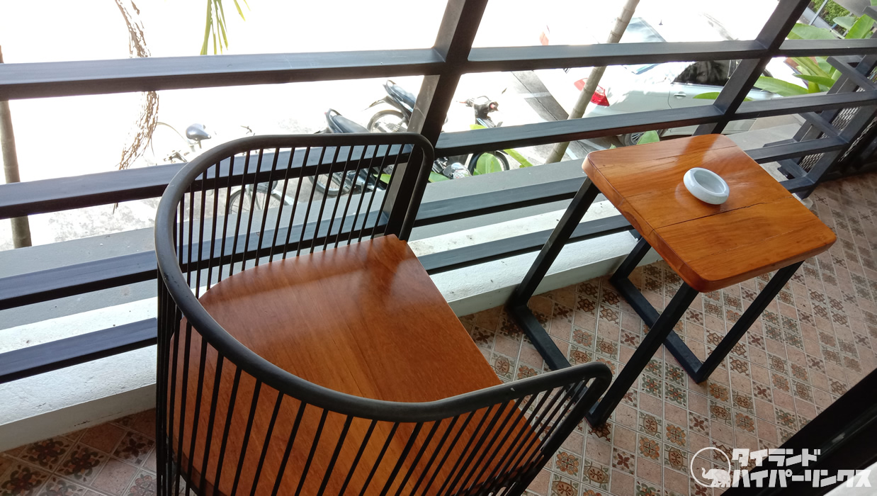ベランダには椅子とテーブル。灰皿もあるので、喫煙はこちらで。