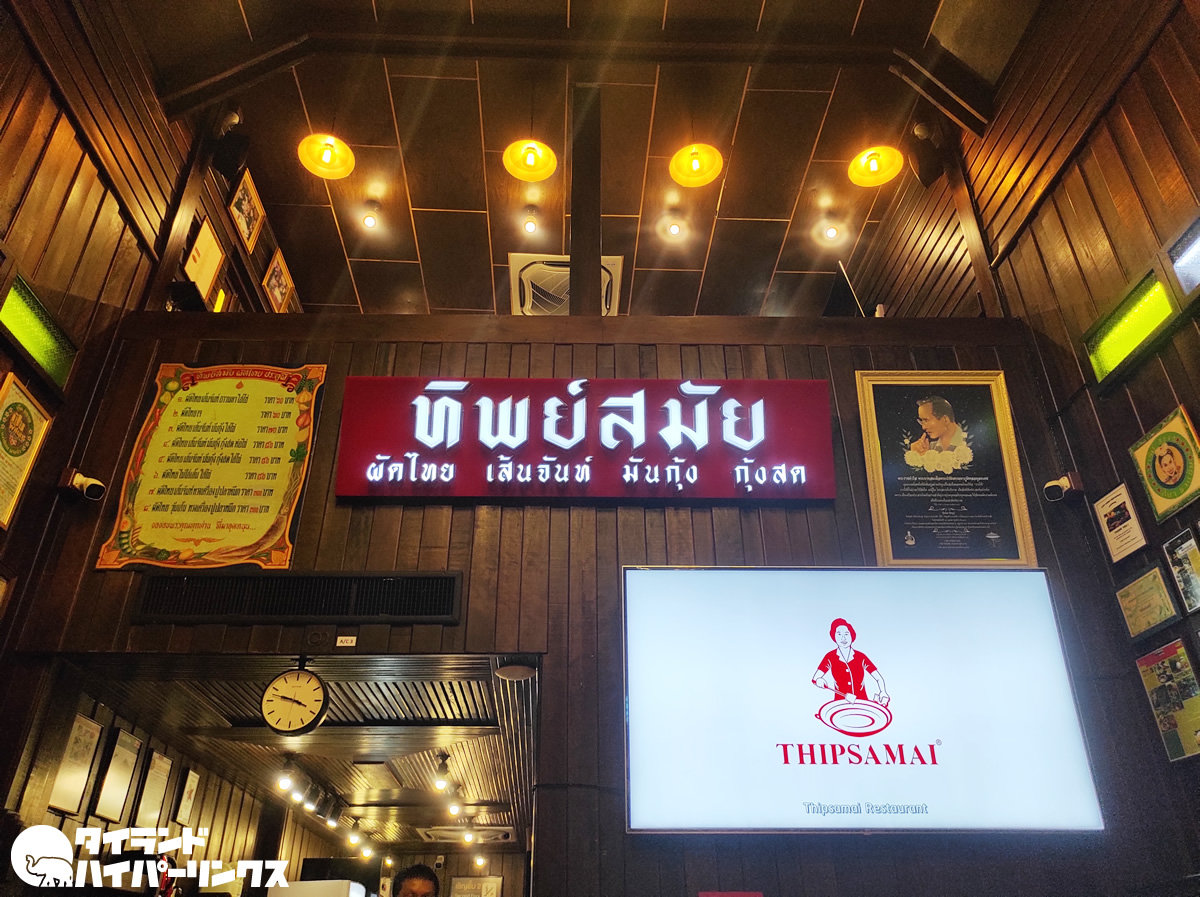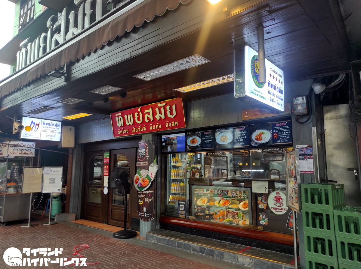 バンコク・マハチャイ通りにあるタイ式焼きそば・パッタイ専門店「ティップサマイ(THIP SAMAI、ทิพย์สมัย)」。1966年創業で、玉子に包むパッタイ「パッタイホウカイ(ผัดไทยห่อไข่)」発祥の店です。