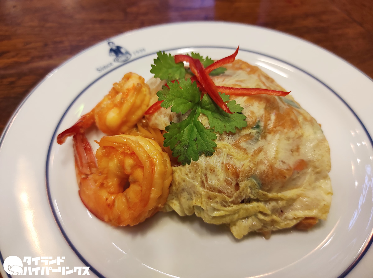 オーダーしたのはもちろん名物メニューの「パッタイホウカイ(ผัดไทยห่อไข่)」(120バーツ)。また今回はオーダーしませんでしたが「オレンジジュース」(この日は160バーツ)も人気なのだとか。