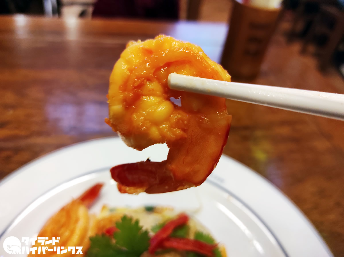 量は少なめですが、薄焼き卵に包まれた、美しい「パッタイホウカイ」。