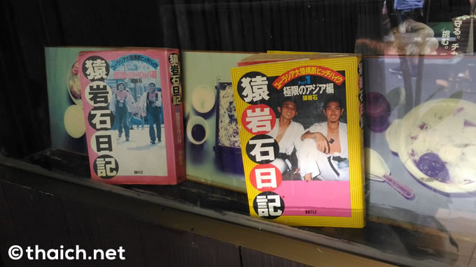 「とん清」の店頭のショーウィンドウには、「ユーラシア大陸横断ヒッチハイク」の記録である「猿岩石日記」が展示されていました。メニューの写真よりも、「猿岩石日記」の方が断然目立っています(笑)
