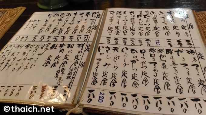 こちらがメニューの一部。180バーツの「ロースかつ定食」を注文しました。無料のお茶を飲みながら待つこと数分・・・。