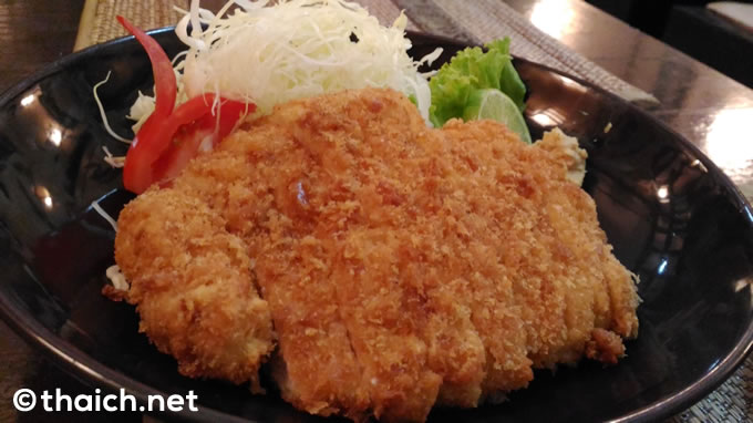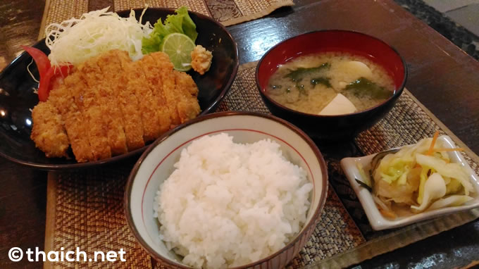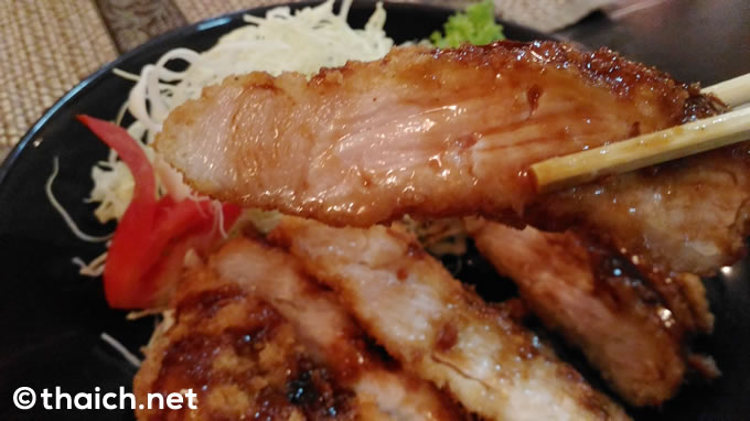 ロースかつはご覧の通り、手のひら以上のサイズはあろうかというかなり大きなもの。タイらしくマナオ(タイのライム)が添えられていました。
