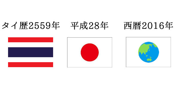 いよいよ新しい年に突入しました。西暦では2016年ですが、日本では平成28年、タイ歴では2559年ということになります。皆さんご存知の通り平成28年は今上天皇がご即位されて元号が平成に変わって28年ということですが、タイ歴は釈迦が入滅された翌年から数えて2559年ということだそうです。