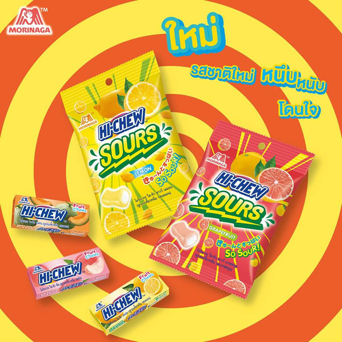 まずはFacebookページを発見。Hi-Chew Thailand 。コンビニで発見した袋入りの「ハイチュウ」の写真もありました。どうやらこれは新商品のようです。購入したグレープフルーツ味の他にもレモン味が。普通の四角いタイプのハイチュウにはメロン味もあるようです。
