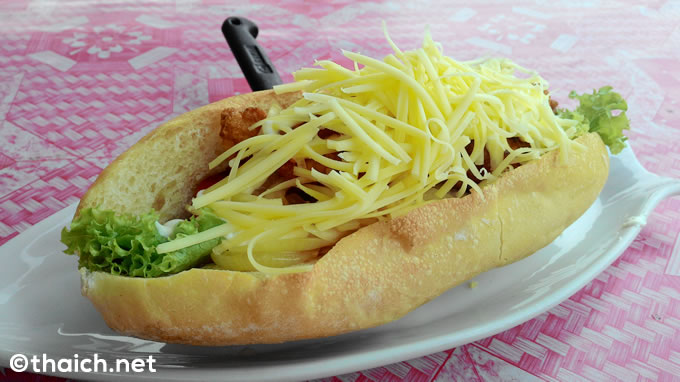 こちらはビエンチャンのサンドイッチ屋さんで頼んだソーセージ&チーズ サンドイッチで1万キープ(約140円)。