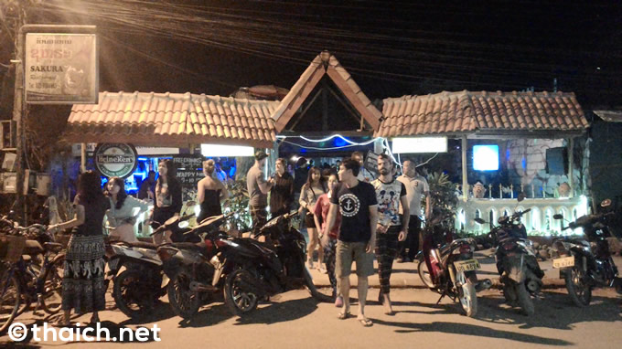 バンビエンは小さい街なので夜遊びする場所はあまりありませんが、それでも夜中まで大音量で音楽を流すバーがいくつもあります。その中でも特に沢山の外国人観光客で賑わうのが「サクラバー(SAKURA BAR)」です。