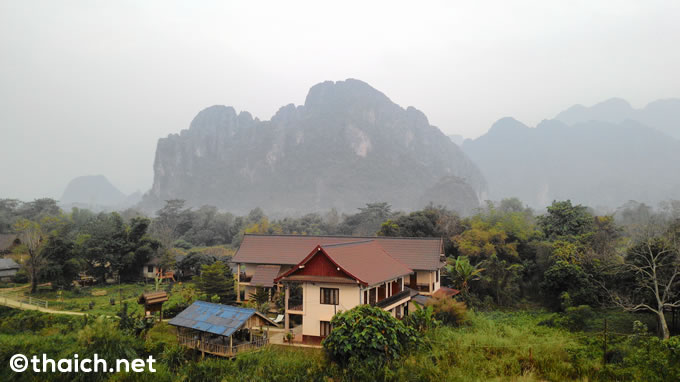 「スークソンブーン ゲストハウス」この眺めで一泊1400円!ラオス・バンビエンのお薦めホテル