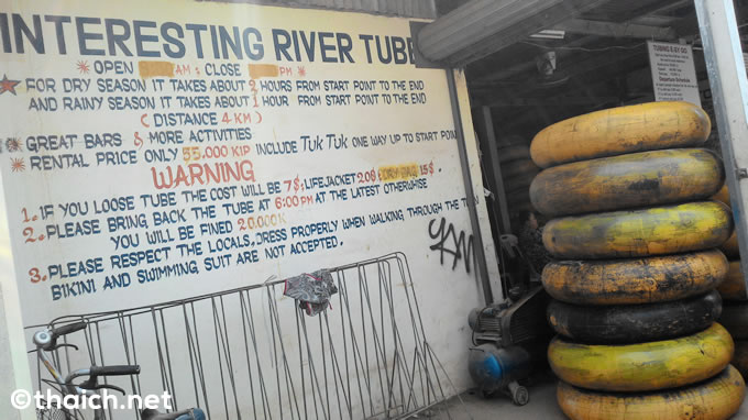 バンビエン名物、タイヤチューブでの川下り用のレンタルタイヤチューブ屋さん。