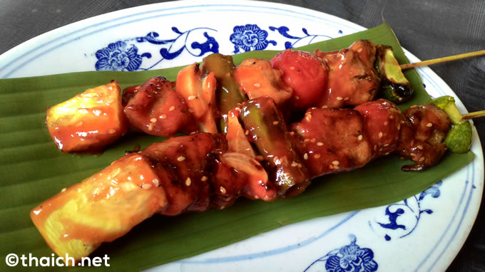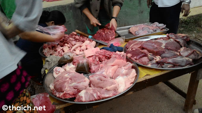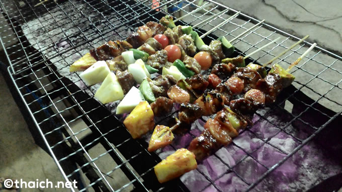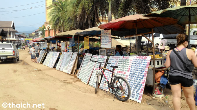 タイに比べたら物価の高いバンビエンは、何を食べてもタイよりも高いのです。ここでは小さなムーピン(豚肉の串焼き)が一本5000キープ(約70円)します。タイで買うムーピンの倍以上の価格。