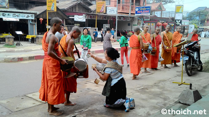 ラオスはタイ同様に仏教の国です。托鉢僧へのお布施の様子です。