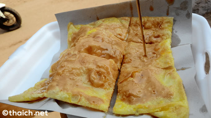 そこに練乳をたっぷりかけた上で、ピーナツバターをたっぷり塗ったロティが出来上がり。超高カロリーなんじゃないでしょうか(笑)