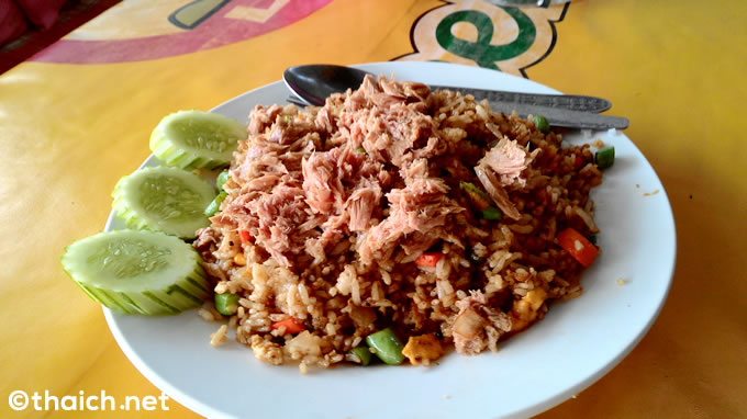 こちらレストランのカオパット・ツナ(ツナチャーハン)。カオパットの上に缶詰のツナがたっぷり乗っています。これが中々イケるんですよ。1万5000キープ(約210円)。
