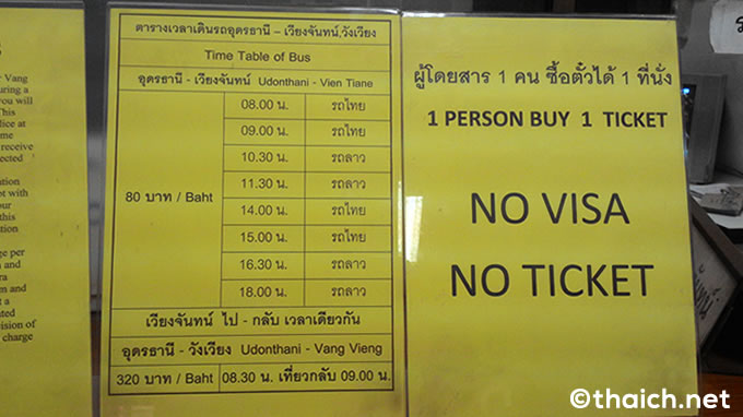 ラオス・バンビエン発タイ各地(ノンカーイ、ウドンタニ、チェンマイ他)行きの国際バス、料金表と時刻表