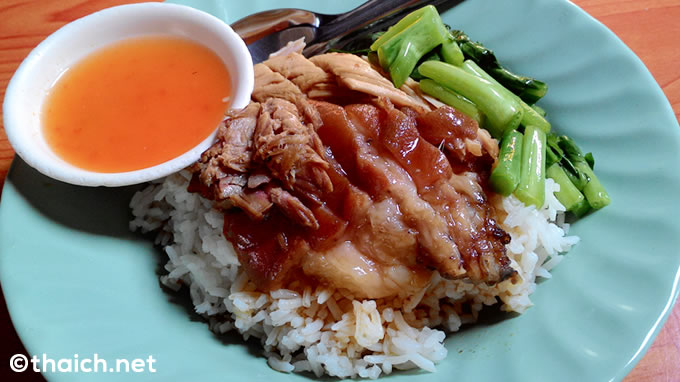 辛くない、しかも間違いなく日本人の口にも合うであろうタイ料理がこちら「カオカームー(ข้าวขาหมู)」。中語語では「 猪脚飯」と言い、中華圏でもよく食べられる料理のようです。
