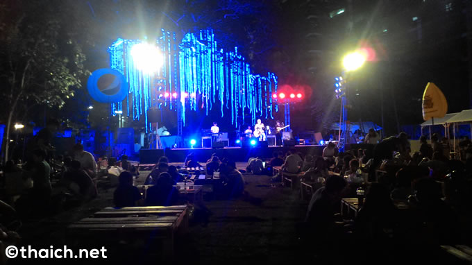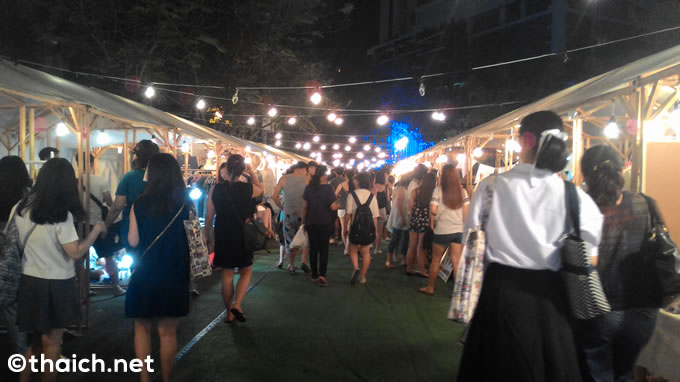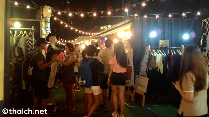 スクンビット通りから「ARTBOX」の看板のある入口を入ります。ここを抜けると広~いナイトマーケットが。ざっくり言うと左手がショッピングエリア。右手が飲食エリア。一番奥がコンサートも出来るステージです。