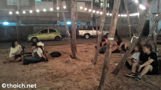 これが一番奥にあるステージ。手前にはテーブルが並んでいて、地面に直接座ってリラックスできるようになっています。