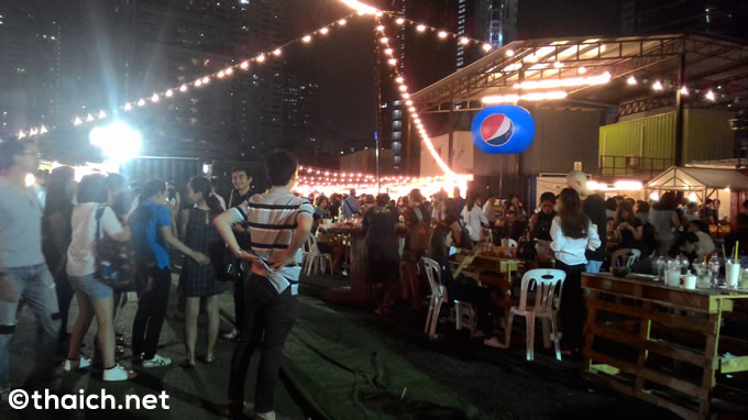 食べ物も屋台の定番の唐揚げやイカ焼きやパッタイなどから、サーモン刺し身、牡蠣、山盛りエビ、ハンバーガー、ビザ、フライドポテトなどなどなどなど・・・・。