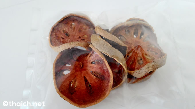 雑貨屋さんの店頭でスライスされた乾燥マトゥーム5個入りが15バーツ(約46円)で売られていたので、購入してマトゥーム茶を作ってみました。