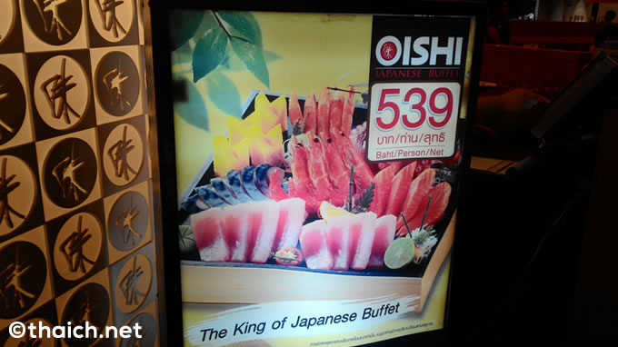 店頭には「和食ブッフェの王様(The King of Japanese Buffet)」の文字が!価格は一人539バーツ(約1700円)です。