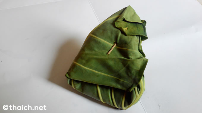 綺麗に葉っぱに包まれてはいますが、その中も中身がこぼれ出さないようにさらにビニールで包まれています。全部開くと、出ました「カオマーク」。