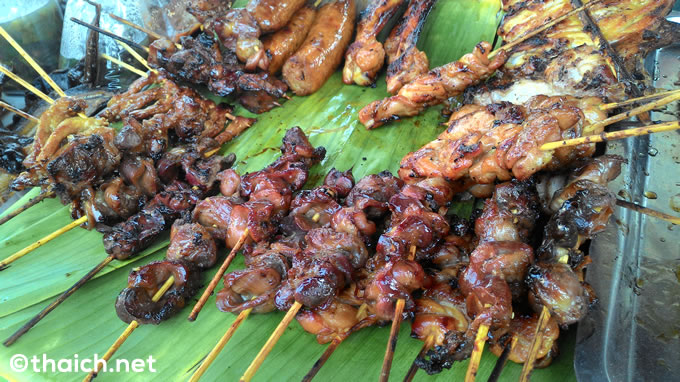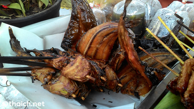 こちらは豚肉や鶏肉、ナマズなどの炭火焼きなどが売られているイサーン(タイ東北)屋台。煙の良い匂いに釣られて、今日はこれに決まり!