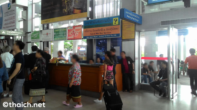 ラオスの首都ビエンチャンへ空の旅。ビエンチャン・ワットタイ国際空港の到着ロビーにはタクシーカウンターがあります。