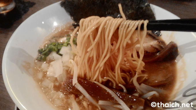 これがバンコクにいることを忘れるくらいの、日本で食べるラーメンにもまったく引けをとらない美味しさで、一番人気なのも納得。また、このドロドロのスープに、テーブルに置いてあるポットの魚介風味のスープを「ゴールデンスープ」を足すと、また一味違った味が楽しめます。