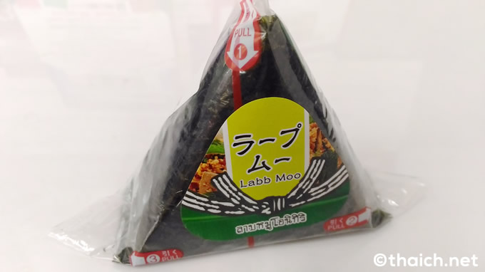 そんなMaxValuでラープムー(ลาบหมู)のおにぎりが売られていたので買ってみました。一個29バーツ(約90円)。