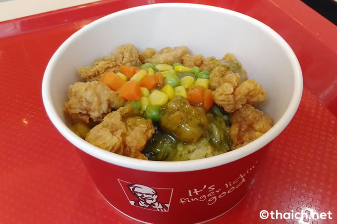 タイのKFC(ケンタッキーフライドチキン)にご飯物メニューがあったので食べてみました。ボウルにご飯と具材が乗った、日本でいう丼物です。