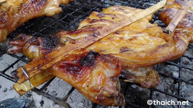 タムテンだけではお腹がいっぱいにならないので、モチ米と鶏の炭火焼き「ガイヤーン」も一緒に買いました。結構大き目の物を選んで価格が50バーツ(約150円)。