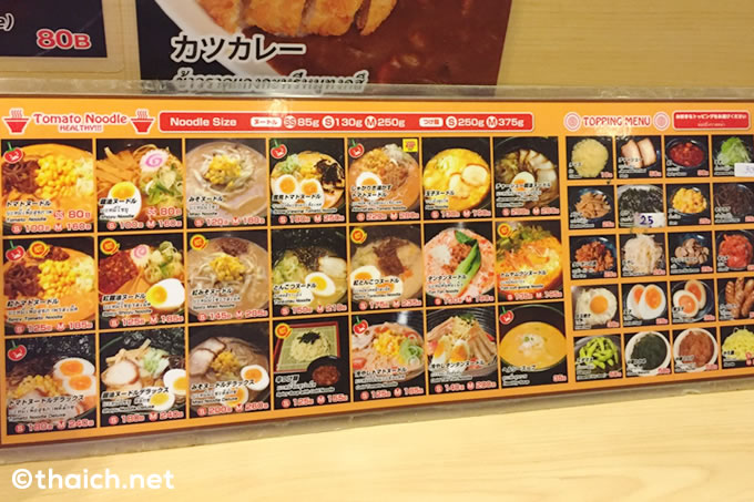 「トマトヌードル」のメニューはご覧の通り豊富。サイズもSS、S、Mが選べます。