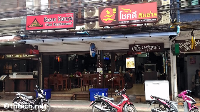 ある日曜日、「午前中からお酒が飲めるお店がアソーク辺りでないかな?」と探していて巡りついたのがスクンビット通りソイ23にあるタイ料理店「バーンカンヤー(Baan Kanya)」。並びにも早くから開いていてお酒が飲めるお店は2,3軒ありましたが、このお店が一番ビールが安かったのです。大瓶で120バーツ。「チョークディーディムサム(ChokeDee Dimsum)」という飲茶屋さんも一緒になっているので、シュウマイや肉まんや肉骨茶(パクテー)なんかも頼めます。