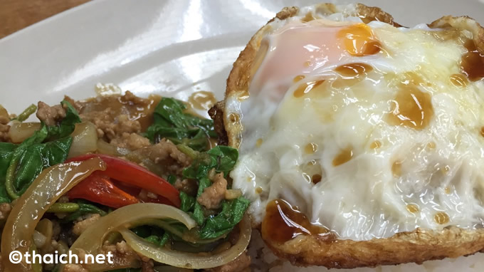 ご飯物もカオパット(チャーハン)やガパオライスなどなど。これは目玉焼きつきのガパオライス。
