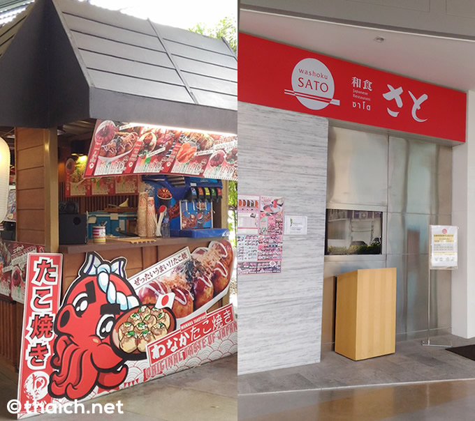 “JAPAN”をコンセプトにしているので、ほぼ日本料理のお店です。一階部分はまずは店舗でなくブースのたこ焼き屋さん。そして店舗は、しゃぶしゃぶ食べ放題の「和食さと」です。