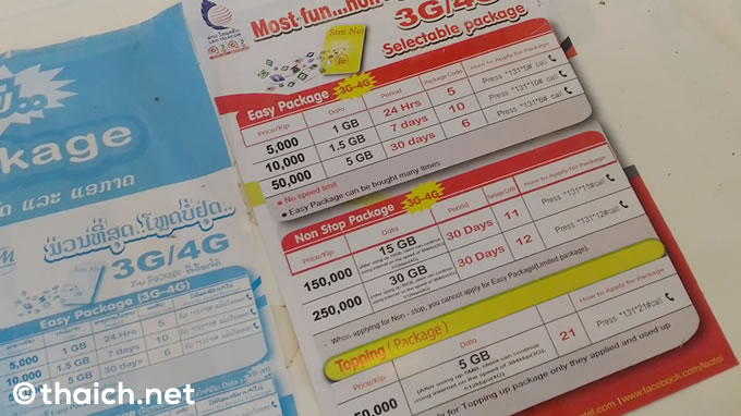 係の女性によると、SIMカードは10,000キープ(約130円)。インターネット接続は4Gも可能で、利用期間によってプランが選べるとのことで、7日間利用可能で利用可能容量が1.5Gを選択です。このプランは10,000キープ(約130円)。この分の金額をチャージするので、合計支払い額は20,000キープ(約260円)でした。とっても安いですね!