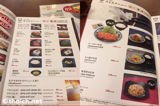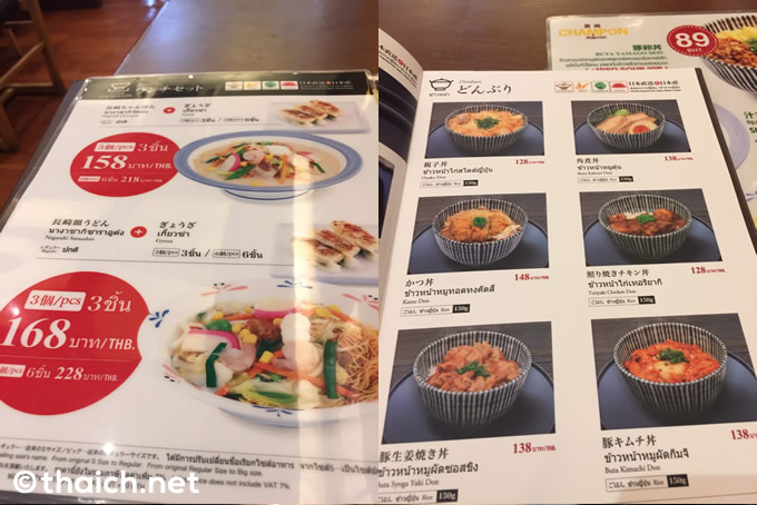 メニューは「長崎ちゃんぽん」(レギュラー99バーツ ビッグ 178バーツ)や「長崎皿うどん」(レギュラー108バーツ ビッグ188バーツ)をはじめ、「親子丼」(128バーツ)や「かつ丼」(148バーツ)などのどんぶり類も充実。